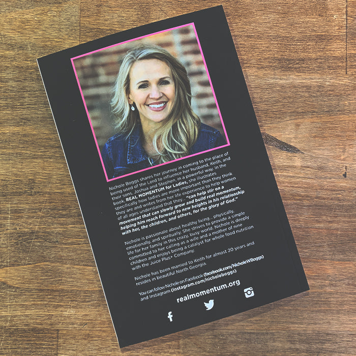 Nichole Boggs shares her journey in coming to the place of being used of the Lord to influence her husband, Keith, and their sons Joshua, Stephen,Caleb, and John. In the book, REAL MOMENTUM for Ladies, she illustrates how women are more important than they think they are. Nichole writes from her life experience to help women understand that they… “can stir on a movement that can slowly grow and build real momentum helping him reach forward to new heights in his relationship with her, the children, and others, for the glory of God.”